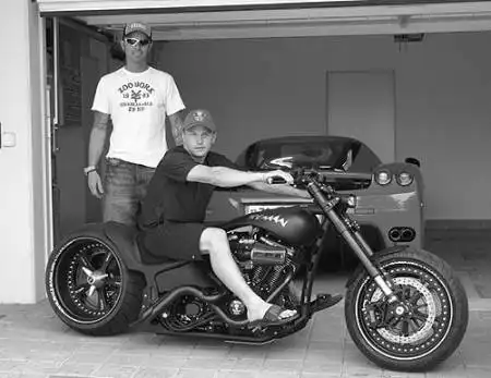 на 3-ей фотографии на мотоцикле Кимми Райконен (пилот феррари в гонках Формула-1) еееестественно блин он не из бедных )))))