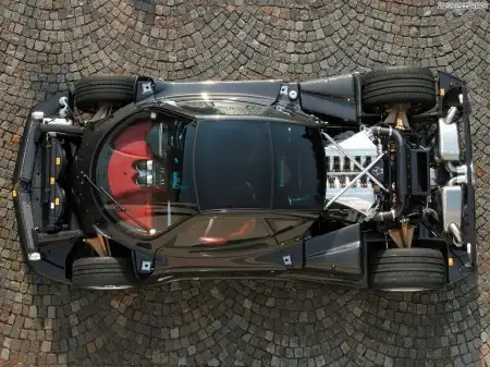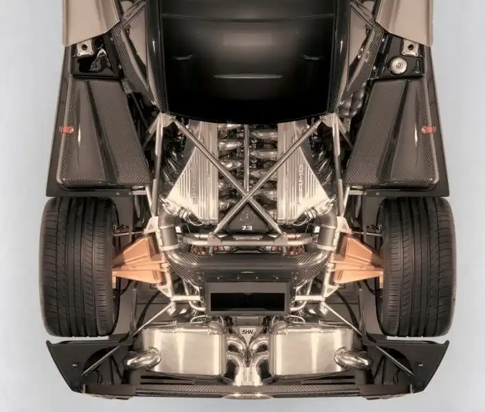 За сиденьями под длинным задним капотом расположился 7,3-литровый V12 от AMG с четырьмя клапанами на цилиндр. Это эксклюзивный силовой агрегат, совсем не тот мотор битурбо, который приводит в движение, например, Mercedes-Benz S73 AMG. Горацио Пагани принципиально отказывается от турбонаддува. Но мощность от этого не пострадала.