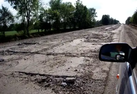 Тот, кто сказал, что в России две беды – дураки и дороги не был на Украине. Всем кто собирается предпринять автомобильное путешествие по трассе М2 в направлении Москва-Киев либо Киев-Москва посвящается. Фото сделаны 26.08.2007г на трассе М2 на территории Украины на отрезке трассы между таможней и г. Нежин. Если бы я знала о том, как ведутся ремонты центральных трасс на Украине, я бы сделала пару фото ремонтов дорог в России. На трассе сорван весь асфальт на всех полосах и разбиты бетонные плиты, осколки которых хаотически торчат. Объездных дорог нормального качества нет (проселочные дороги, где с трудом проезжает одно авто, полное отсутствие знаков) в некоторых местах объездов нет вовсе и безо всяких угрызений совести авто пускают на трассу с раздолбанными, плитами и неогражденными обрывами. Технику на всем участке ремонта можно пересчитать на пальцах одной руки, она прямо на месте ремонтируется. В общем,если у вас джип, то можете попытаться пробраться, но лучше выберите другой путь