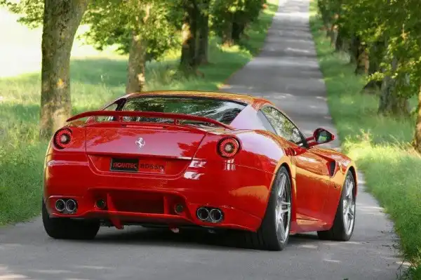 Знаменитый специалист по тюнингу Ferrari - немецкая компания Novitec Rosso - подготовила к автосалону во Франкфурте заряженную Ferrari 599 GTB. Мощность двигателя инженеры повысили до 645 л.с. ( +25 л.с. к базовому показателю) установив новую выпускную систему и перепрошив мозги двигателя. Максимальная скорость повысилась на 5 км/ч и немного сократилось время разгона до сотни. Стандартная подвеска была заменена на продвинутую KW с возможностью регулировки клиренса и жесткости из салона. Компания предлагает также установку фирменных литых дисков - 20-дюймовых спереди и 21-дюймовых сзади, обутых в спортивную резину Pirelli P Zero. Novitec Rosso также может установить множество внешних элементов, улучшающих динамику вашего Ferrari и делающих его еще красивее.