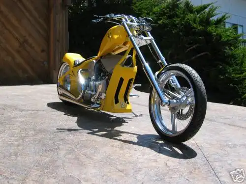 Дополнили внешний вид такие непременные атрибуты, как вилка с таким вылетом, что нашим ИЖам да Уралам и не снилось, и бензобак-капля. А вот с окрасом пришлось повозиться. Дело в том, что по всем американским канонам байк должен быть темного цвета, а на баке нарисован флаг, как в культовом фильме «Беспечный ездок». Но ничего этого нет! Напротив, мотоцикл щеголяет одним из фирменных цветов Феррари, а именно желтым цветом Модены, родины великого Комендаторе