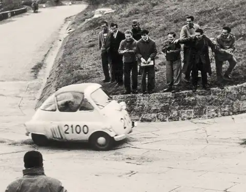 Презентованная публике в ноябре 1953-го, двухместная Isetta вызвала сенсацию. В следующем году несколько таких машин участвовали в знаменитой гонке Mille Miglia (что в переводе с итальянского означает «Тысяча миль») и даже заняли три первых места в своём классе, пройдя всю трассу со средней скоростью более 70 км/ч. Это поразительный результат, если учесть, что максимальная скорость этих малюток не превышала 85 км/ч. Однако в Италии Isetta так и не стала хитом продаж. Вероятно, из-за сильнейшей конкуренции со стороны FIAT с его «настоящим автомобилем» 500C. Всего в Италии было собрано около 1000 Изетт плюс ещё примерно 4 тысячи таких же машин в грузовом варианте Autocarro, которые могли перевезти до 600 килограммов.