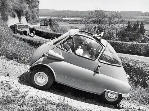 А началось всё вскоре после Второй мировой. Немцы с редкостным упорством во второй раз за тридцать лет навели в Европе полный шухер, через что сами больше всех и пострадали. Поскольку в стране после войны жилось очень небогато, а ездить на чём-то было надо, на свет божий вместо нормальных автомобилей стали появляться всякие экзотические уродцы, часто трёхколёсные, с моторчиками ничтожной мощности. В те годы немцы катались на таких причудливых конструкциях, как «кабинероллер» Messerschmitt, трициклы Heinkel и Fulda-Mobil, крохотные микролитражки Gutbrod и Goggomobil, и многие другие (названия прямиком из Люфтваффе неслучайны: ведь авиазаводы остались не у дел).
