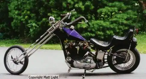 Знаменитые чопперные вилки первое время растут в длине как грибы после дождя. "Springer" - родная пружинная харлеевская вилка просто доваривается или на её место собирается длинная вилка с аналогичной конструкцией, кроме того, в моду входят параллелограммные вилки, которые удобны простотой и стойкостью конструкции, кроме того, они крайне лёгкие и их можно сделать почти любой длины. После появления на свет Harley-Davidson Hydra Glide, родился Wide Glide - гидравлическая вилка с широко расставленными ногами. Это ничто иное, как облегчённый Hydra Glide, раздетый от своей жестяной оболочки и получивший маленькую чопперную фару. Wide Glide удлинялся за счёт смены труб вилки. Некоторые особо увлечённые длинными вилками байкеры поняли, что после превышения определённой длины гидравлика теряла функциональность, и амортизация производилась больше за счёт пружинного эффекта самих труб вилки. В результате гидравлика была заброшена как лишний балласт, то, что осталось, стало называться "rigid fork" ("жёсткая вилка").