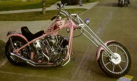Всё остальное - длина вилки и волос парня за рулём, а так же степень его немытости и общественного благосостояния, сумасшедшие цвета покраски, высокие рули ("ape hangers"), ширина заднего колеса, наличие переднего тормоза, ручное переключение скоростей и ножное сцепление ("jokey shift" + "suicide clutch"), задние спинки, уходящие под облака ("sissy bar") вместе с выхлопными трубами, снабжёнными раструбами в виде рыбьих хвостов, "goose necks" и прочие инженерные излишества, называемые сидящим за рулём вышеупомянутым парнем "выражением личной свободы и индивидуализма", пришло в стиль позже и в разное время выглядело по-разному. Всё это продолжает меняться и теперь, но ни в коем случае не является обязательными атрибутами стиля. Изменения происходили под влиянием моды, государственных законов, общего стиля жизни, количества потребляемой наркоты, степени помешательства владельца и количества денег в его кармане.