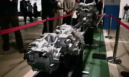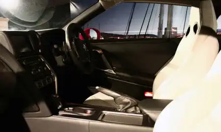 Раз за разом обходя автомобиль, сложно было избавиться от чувства, что хочется как можно скорее сесть за руль и не вылезать из великолепного кокпита никогда. Но это было лишь первое впечатление, потому что оказалось, что это далеко не предел. Сразу после нескольких слов о дизайне разговор плавно перешел в техническое русло, и состояние собравшихся продолжило меняться в геометрической прогрессии, а ведь было от чего. Под капотом у полноприводного GT-R стоит 3,8-литровый двигатель строения V8 с двумя турбинами, который рождает на свет 480 л.с. при 6400 об/мин. Что касается максимальных значений крутящего момента, то отметки в 600 Нм он достигает уже начиная с 3200 об/мин и не прекращает безумие вплоть до 5200 об/мин, плавно опускаясь на отметку в 490 Нм при максимальных 7200 об/мин. Даже просто услышав это, практически начинаешь ощущать на себе, как он будет вдавливать тебя в сиденье при разгоне до 100 км/ч за 3,7 секунды, не говоря уже о максимальных скоростях.