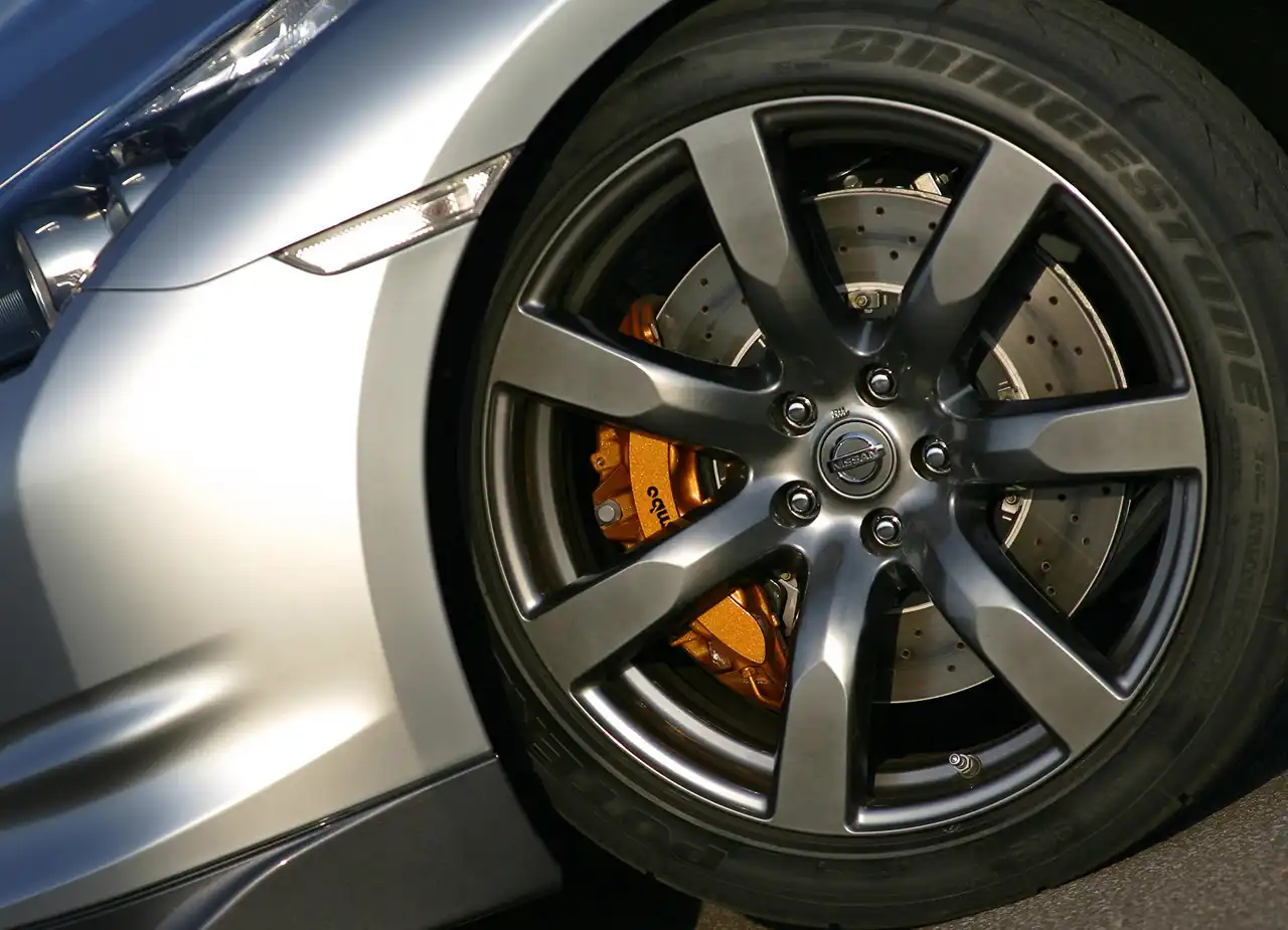 Но не только на прямых будет обгонять соперников GT-R. Помогать умелому пилоту при атаке поворотов призвана подвеска Blistein DampTronic и мощные тормоза от компании Brembo с шестипоршневыми суппортами спереди (на задних колесах - 4 поршня). Уверенност должны добавить и специально разработанные компанией Bridgestone для скорохода Nissan шины типа Runflat.