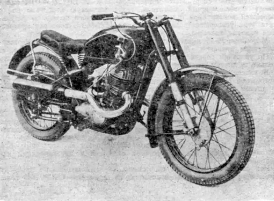 по документации, полученной из Ленинграда. Фактически это были двойники модели "Л-300" (та самая, разработанная Можаровым копия "ДКВ-Люксус-300") - двухтактный одноцилиндровый двигатель с поперечной продувкой, трехступенчатая коробка передач, привод на заднее колесо цепью, рама из штампованных элементов, собранная на болтах, параллелограммная передняя вилка, неподрессоренное заднее колесо.