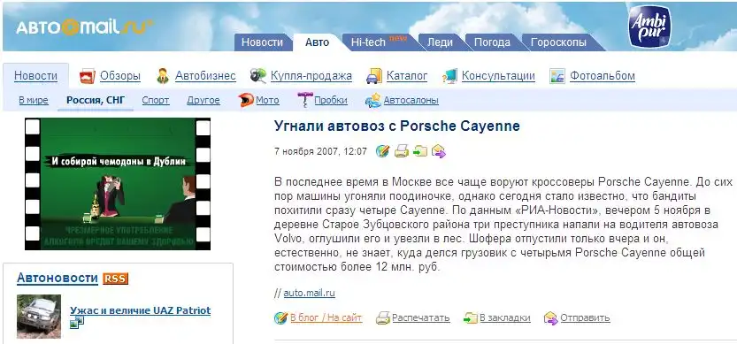 Такую новость мы можем увидеть на Авто@mail.ru