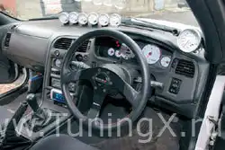 Изменений в салоне по сравнению с базовой версией - минимум. Tорпедо украшает стройный ряд новых приборов, сообщающих пилоту информацию о температуре и давлении масла, состоянии охлаждающей жидкости, давлении наддува и т.д. Руль, накладки на педали, дополнительные приборы - все это, конечно, интересно, но пора и мотор завести. Салон тотчас наполняется низким и очень напористым гудением выхлопной системы с титановым оконечником, сзади доносится жужжание двух бензонасосов, а из-под капота - стрекотание высокопроизводительных форсунок. Дополняет звуковую картину шипение шестидроссельного впуска и прямых воздушных фильтров. Весь оркестр играет уже на холостых оборотах.
