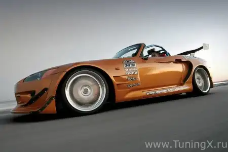 Когда Honda объявила миру о дебюте S2000, любители заднеприводных автомобилей были счастливы. Экстаз – это слишком слабое описание эмоций, царивших в лагере Honda. Honda завоевала множество новый поклонников уже только выпуском S2000. Задний привод и ходовая часть родстера, 240 л.с. высокооборотистого 2,0-л двигателя – в этом автомобиле практически нет недостатков. Все это плюс сбалансированные характеристики управляемости – и недостатки найти трудно. В то время, как совсем недавно некоторые дрифт-команды выбрали S2000 своим оружием, на сцене появился новый мощный S2000 во всей своей красе. Вероятно, он был вдохновлен производителями запчастей для S2000, участвующих в дрифтах.
