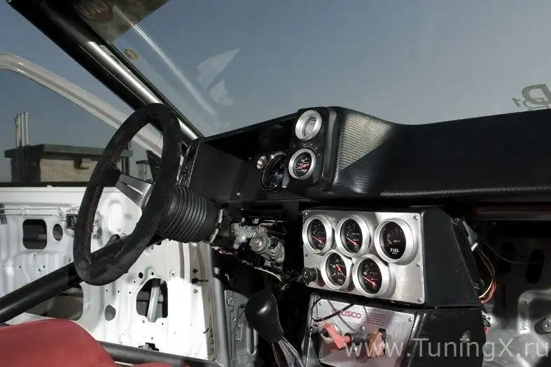 В салоне практически все было демонтировано и оставлено уборщикам мусора. Чтобы сделать автомобиль как можно более проворным и одновременно комфортабельным, были установлены сидения Bride Zeta III и рулевое колесо Nardi.