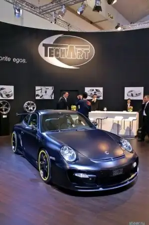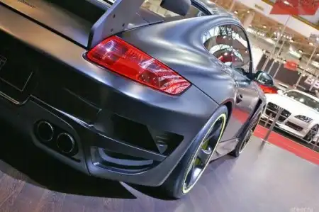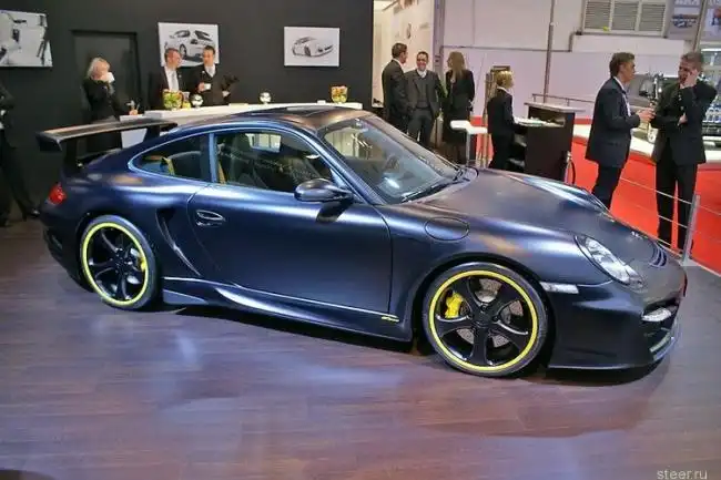 Porsche GT Street - Новинка построена на базе актуальной модели Porsche 911 Turbo и оборудована модифицированным 3,6-литровым агрегатом (электроника, турбонаддув, спортивный выхлоп с коллекторами) мощностью в 630 лошадиных сил (серия — 480) и с максимальным крутящим моментом в 820 Нм. Это позволяет «перцу» делать рубеж в 100 км/ч всего за 3,2 секунды, 200 км/ч за 10,9 секунд и развивать максимальную скорость до 345 км/ч.