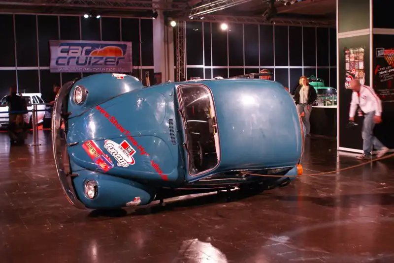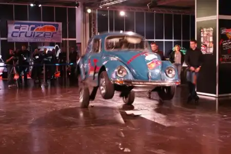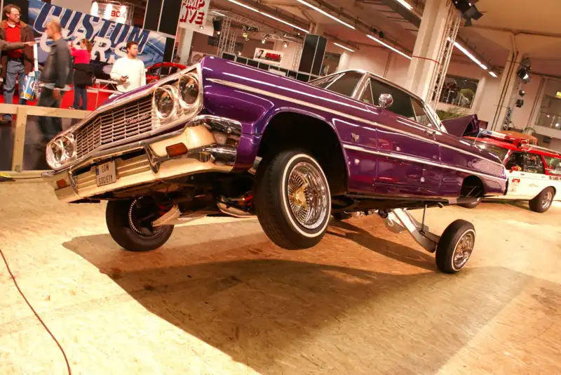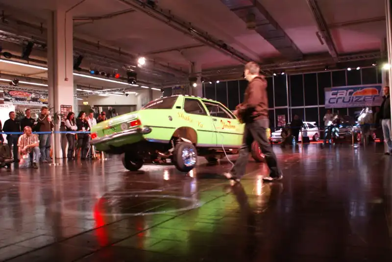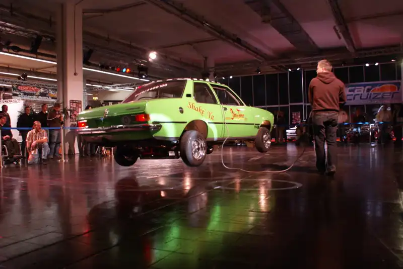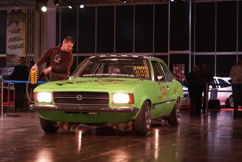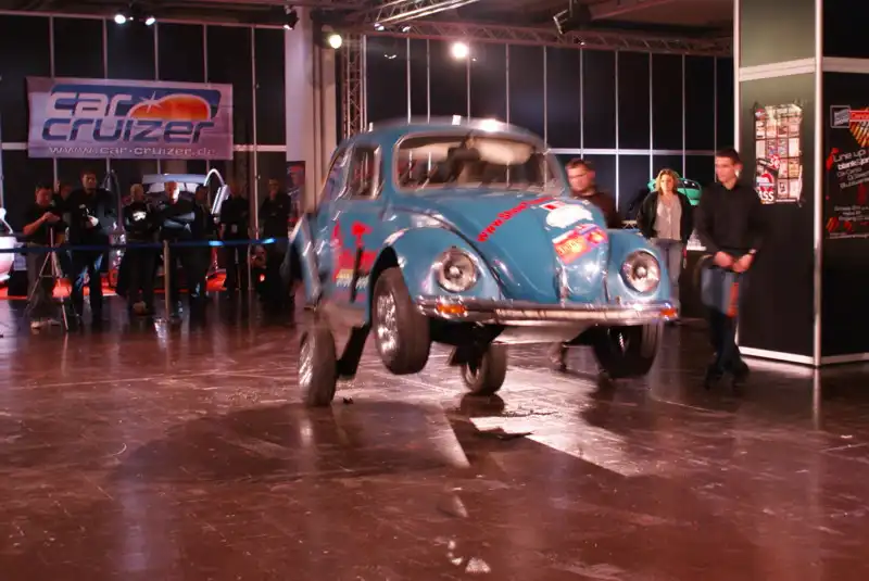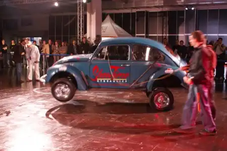 На взгляд MAXI tuning, звездами очередной выставки стали немецкие фанаты лоурайдинга. Они не только привезли свои автомобили, но и ежедневно устраивали показательные выступления. Для многих немцев это стало настоящим открытием. Ведь лоурайдинг в Германии до сих пор остается на любительском уровне. Это занятие отдельных энтузиастов: если где-то и проходят соревнования, то без поддержки крупных спонсоров и без большого количества зрителей. Другое дело – прыжки и «танцы» на виду у посетителей самой крупной немецкой выставки. Фанаты пневмоподвески не ударили в грязь лицом: их автомобили не просто опускали нос или корму - многие из них в «танце» могли совершить разворот на триста шестьдесят градусов, а один «жучок» каждое свое выступление заканчивал, упав на бок – на специально приваренные к борту машины упоры. Платить за такие возможности приходится пространством внутри автомобиля: обязательным оборудованием является четыре насоса (по одному на каждое колесо) и батарея из четырех, а то и восьми аккумуляторов.