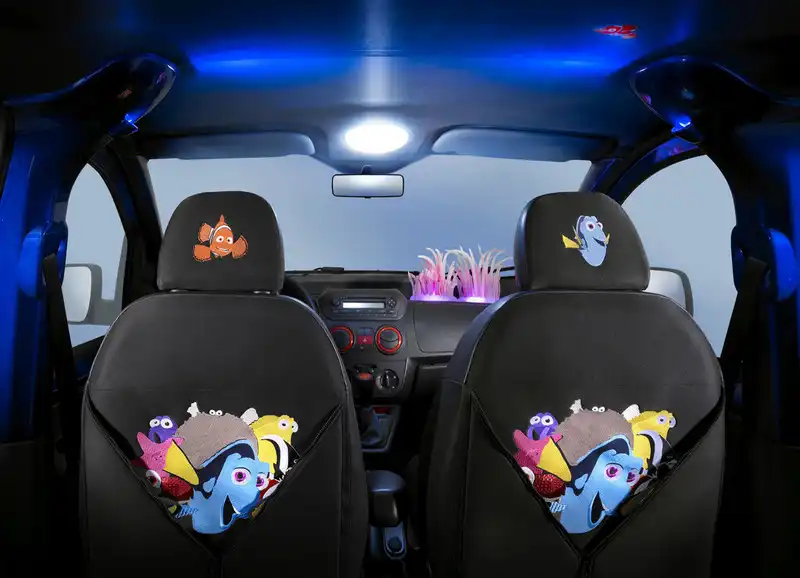 Помимо роскошной боевой раскраски, полностью повторяющей знаменитую рыбку, Citroen Nemo восхищает своим салоном. В принципе, ничего необычного в нём нет: салон как салон. Современный, удобный, функциональный. Но главное не это. Синие стойки и потолок, вышитые пузырьки воздуха на обивке, светящиеся водоросли на передней панели и «плавающие» среди них друзья славной рыбки — вот в чём прелесть этой машинки. Отцам семейства категорически не рекомендуется водить своих чад на выставку в Болонье. В противном случае придётся клятвенно пообещать драгоценным детишкам непременно купить такую «мафыну», как только она появится в магазине.