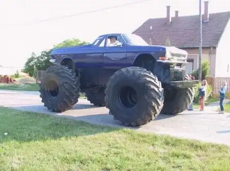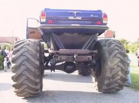 Ну вид конечно кульный... Но вот я сомневаюсь поедет ли она хоть 60 км/ч. Или на горку полметровую заберётся? Офигенное несоответствие масса-мощь.