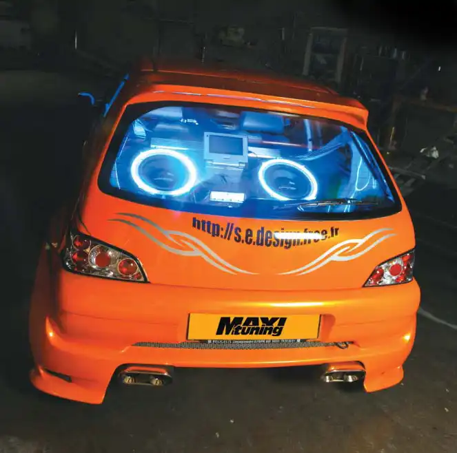Шоу-кар, это автомобиль изначально задуманный как объект для демонстрации достижений фирмы, которая собственно и строит его. Зачастую ими являются, компании занимающиеся разработкой, продажей или инсталляцией всевозможных медиа-компонентов, но не в этот раз. Данный автомобиль был построен не для демонстрации новейших технологий на всяких эвентах, он был создан по заказу частного клиента, причем девушки. Ей хотелось владеть необычной, в тоже время яркой машинкой. Работу по доработке «Пыжа», она доверила студии SE Design, на счету у которых не один авторский проект. И глядя на автомобиль, можно смело сказать ее выбор был ненапрасным. Все выполнено по высшему разряду. Салон под завязку забит аудио «мульками». Вместо заднего сиденья расположились компоненты Caliber, видно инсталлятору больше всего по душе комплектующие данной фирмы. В центральную консоль имплантированы монитор Caliber и головное устройство Alpine.