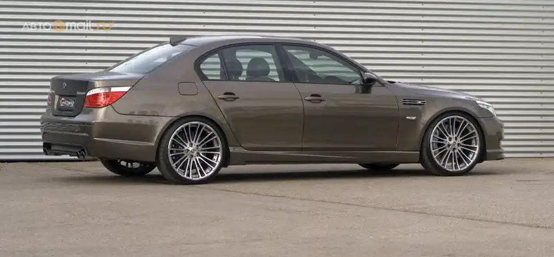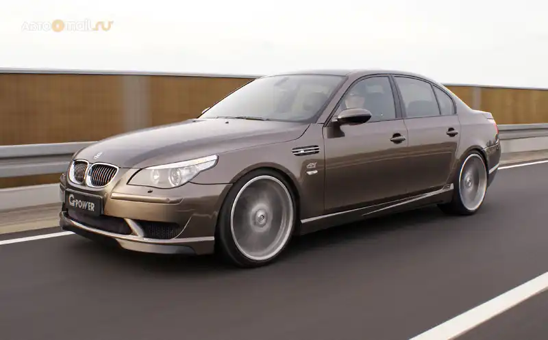 Немецкая тюнинговая компания G-Power разработала самую мощную на данный момент BMW M5. Если стандартные «эмки» имеют под капотом мотор V10 объемом 5,0 л, который выдает 507 л.с., то инженеры G-Power сумели сделать машину с двигателем, который выдает аж 730 л.с. Столь серьезного роста мощности удалось добиться в первую очередь за счет установки двух турбин. Кроме того, машина получила серьезно модернизированную подвеску, другие тормоза, 21-дюймовые колеса, новый аэродинамический обвес.