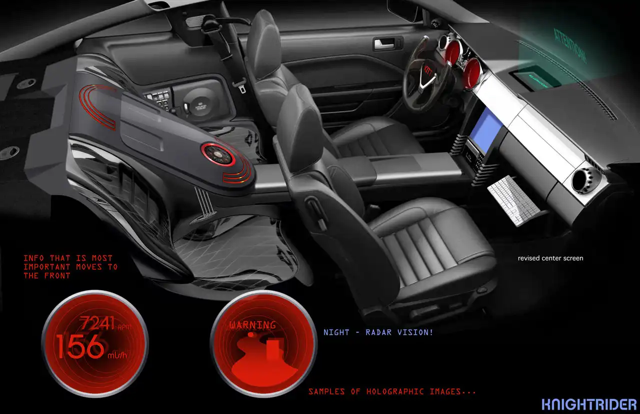 А вот версию Attack, которая будет участвовать в сверхскоростных автопогонях в сериале, разработал известный Гарольд Белкер, который отвечал за транспортные средства в фильмах: «Бэтмен и Робин», «Инспектор Гаджет», «Поле Битвы Земля», «Человек Паук», «Три Икса» и многие другие. С Белкером работал Тед Мозер из компании Picture Car Warehouse и ещё двадцать пять специалистов. Общими усилиями они подготовили шесть различных версий Shelby GT500KR KITT. Были разработаны новые аэродинамические обвесы, огромные антикрылья и спойлера, несколько разных решёток радиатора и «космический» интерьер. В салоне куча бутафорских приборов и автомобильная развлекательно-информационная система Sync, которую разработала корпорация Microsoft специально для Ford. Руль сделали похожим на тот, что был у оригинального «Китта», под бардачком установили клавиатуру, а посреди задних сидений какую-то невероятную систему, предназначение которой мы узнаем только во время просмотра сериала.
