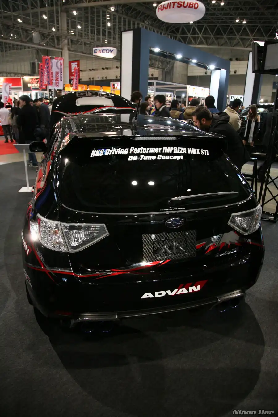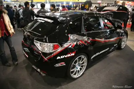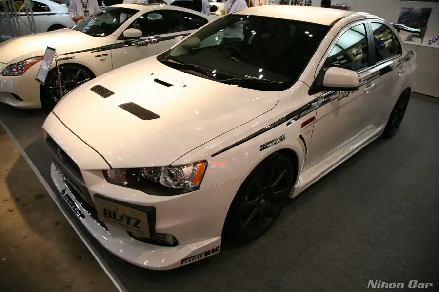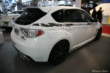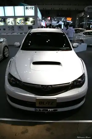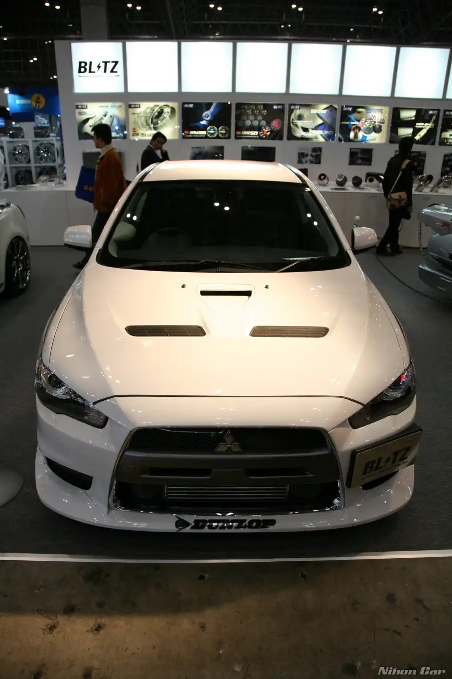 Компания Blitz — японская мастерская с более чем 25-летней историей — на своем стенде показала, что можно сделать с WRX и Evo при небольшом старании. По традиции все автомобили Blitz окрашены в белый цвет, который подчеркивается небольшим количеством стилизованного под росчерк молнии черного оракала. Lancer Evo X укомплектован специальной выпускной системой «Nur Spec DT Double Tube» и большим задним антикрылом. На Impreza же Blitz установил новый турбочарджер и полностью новую выхлопную систему. К сожалению, Blitz не стал указывать характеристики авто, поэтому о том, на сколько выросла мощность Impreza остается только гадать.