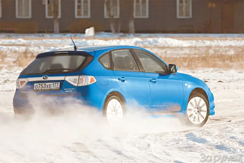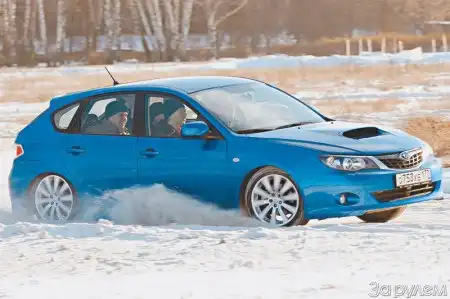 Если не брать в расчет посредственную кулису КП, управление машиной в обычных городских и загородных условиях доставляет большее удовольствие, чем многие авто, что втрое дороже. Несколько длинноходная, но предельно точно работающая педаль сцепления, в меру острый, отзывчивый руль, чуткие, не требующие привыкания тормоза. Однако самое интересное ждало за пределами дороги – почти раллийная трасса, проложенная в чистом поле. Пуская снежные фонтаны из-под колес, мы по очереди носились по раскатанным среди белой целины коридорам, выписывая круги и восьмерки, – неужели такое приятное времяпрепровождение и есть работа гонщиков-раллистов? Счастливчики… Одного из них мы и пригласили опробовать новинку в деле. Для Александра Impreza что-то вроде станка, за который встают каждое утро с понедельника по пятницу. И как только профи сел за руль, машина заметалась по полю, как мышкующая лиса. Сидя справа, я вжимался в ковш сиденья, чтобы не вывалиться на виражах – вот уж не думал, что такие боковые перегрузки возможны на рыхлом снегу! Причем, как выяснилось позже, мы ездили в щадящем технику режиме, чтобы не убить подвеску серийной WRX и не вскипятить тормозную жидкость. Раллийная техника притормаживания левой ногой позволяет машине зацепляться и оставаться на траектории, когда стремительный полет боком вроде бы предполагает только одно – вылет за бруствер метров на пять. Я, например, пару раз вылетал даже на более скромных скоростях – когда ради интереса пробовал поездить с включенной ESP. Машина тут же теряет взаимопонимание с водителем, становясь «вещью в себе», и правильно выставить ее на входе в поворот уже невозможно. Зато, протаранив сугробы, проверил еще и проходимость машины – из снега глубиной 15–20 см Impreza выползает, но это, пожалуй, для нее предел – клиренс тут далеко не вездеходный. А без вмешательства электроники, когда степень пробуксовки колес регулируешь педалью газа, с каждым кругом все лучше и лучше «вкатываясь в трассу», даже эта обычная WRX c не управляемым, а всего лишь зажимаемым вискомуфтой центральным дифференциалом послушна и на запредельной для любого внедорожника скорости. И более мягкая подвеска, видимо, позволила ей стать на таких трассах еще быстрей.