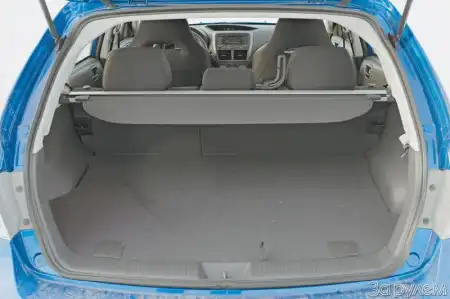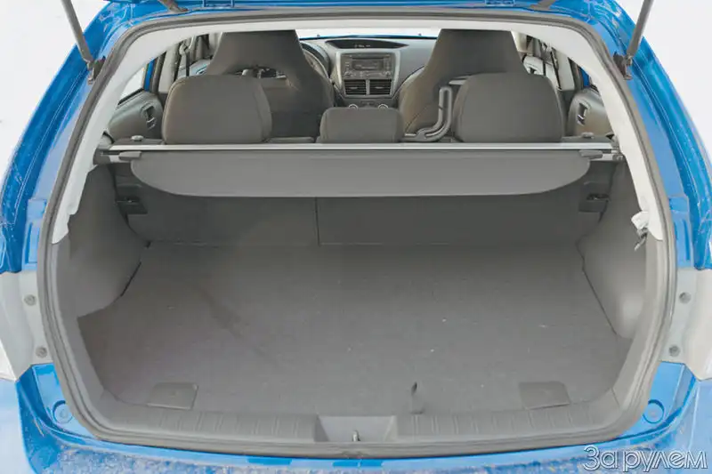 Итак, пятидверка. Идея отсечь выступающий багажник, забрасывающий задок в поворотах, лежала на поверхности – удивительно, что японцы не сделали это лет десять назад. Успехи соперников по ралли, изначально выставлявших против седанов от Subaru и Mitsubishi болиды с куцей кормой, постепенно подточили камень традиции, и новая Impreza в спортивной версии WRX STI отныне будет хэтчбеком. А на европейском рынке – только им в любом исполнении. Новая Impreza стала короче всего на 50 мм, но ее колесная база удлинилась на 95 мм, что автоматически прибавило простора салону. С ростом 175–180 см можно сесть «самому за собой», оставив от коленей до спинки переднего кресла 20–50 мм. А багажник в значительной степени принесен в жертву – он стал не только короче, но и трагически уменьшился в глубину. Объем съела перекочевавшая из заднего свеса седана запаска. Ведь в отличие от большинства переднеприводок гольф-класса Impreza вооружена редуктором заднего моста, над которым и пришлось расположить полноразмерное, аж 205-миллиметровой ширины колесо. Впрочем, на такой машине, как правило, не возят четверых пассажиров одновременно с горой багажа, а в иных случаях можно сложить заднее сиденье, и все влезет.