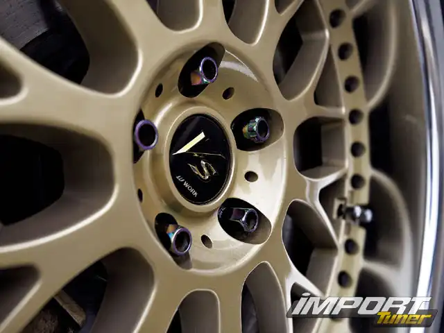 Практически каждый «тюнер» в США, желающий сделать проект в японском стиле, неминуемо сталкивается с проблемой многомесячного ожидания вожделенных супер-редких запчастей из-за океана. Ожидание, даже когда до момента «икс» остается все меньше времени, тяготит всех, и Венди не стала исключением. «Как только я увидела эти диски, я поняла, что это как раз то, что я хочу, — объясняет Венди выбор дисков Work VSXX 19 на 8,5 дюймов спереди и 19 на 9,5 сзади с резиной Falken FK-451. — Я знала, что их придется ждать. Я не позволяла беспокойству овладевать собой, зная, что в итоге ожидание себя оправдает».