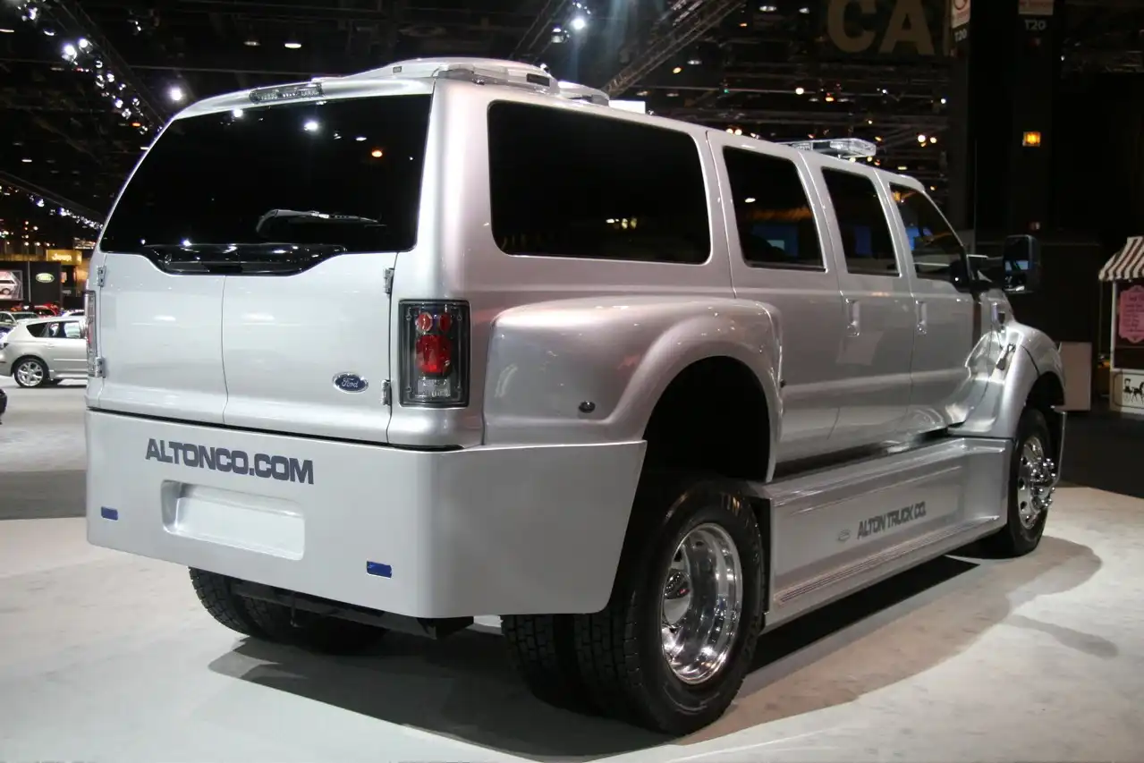 Данный авто от Alton Manufacturing построен на базе Ford F650. Под капотом мотор Caterpillar - 7.2L. Внешний декор венчает ориг. бодикит. В салоне же для удобства пассажиров 2 монитора по 16" и одна 42" плазма.... с 42 динамиками. Стоимость машины - 200 000$.