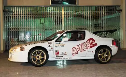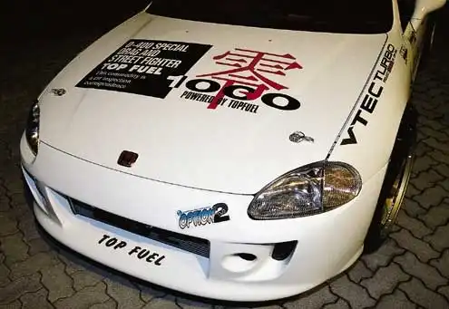 Основная тенденция в японском мире тюнинга напоминает непрерывную битву за превосходство. Телефонные звонки, переговоры и просто болтовня полны бахвальством и репликами вроде «Да, я неплохо поработал». Побитые рекорды, экстремальные двигатели, и «каркасные» дрэг-кары – плоды этого непрерывного соревнования. Так продолжалось бы и дальше, но президент компании Top Fuel Ясуджи Хирано снял завесу тайны со своего 550-сильного 10-секундного центральномоторного заднеприводного автомобиля, оснащенного шарикоподшипниковой турбиной GT3240, имя которого Honda Del Sol! Это заставило всех замолчать на какое-то время.