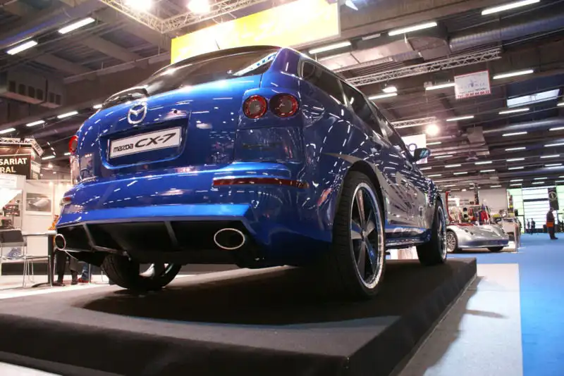 Parotech базируется во Франции и здесь же продает львиную долю своей продукции – логично, что самые долгожданные и востребованные новинки компания «засвечивает» именно на парижском шоу. Конкуренты не отстают – ежегодно два-три новейших обвеса демонстрирует популярная среди французской молодежи марка МТК. В этом году ведущий дизайнер компании Филипп Меттель представил публике бодикиты Kit Rosso для Fiat Grande Punto и пока не имеющий названия обвес для Mazda CX-7. Причем наибольший резонанс вызвал как раз обвес для японского кроссовера. Причин можно назвать сразу несколько. Модель дебютировала сравнительно недавно, и Меттель – чуть ли не первый дизайнер, успевший нарисовать для нее новые пороги и бамперы. Экспонируется автомобиль на стенде французского представительства Mazda, что свидетельствует об оказанном МТК высоком доверии и отнюдь не равнодушном отношении производителя к тюнингу. Вдобавок посаженный на 50 мм ниже и обутый в 22-дюймовые колеса с низкопрофильной резиной CX-7 выглядит настоящим асфальтовым пижоном и заставляет забыть рекламные ролики с ездой по лишенной дорог пустыне.