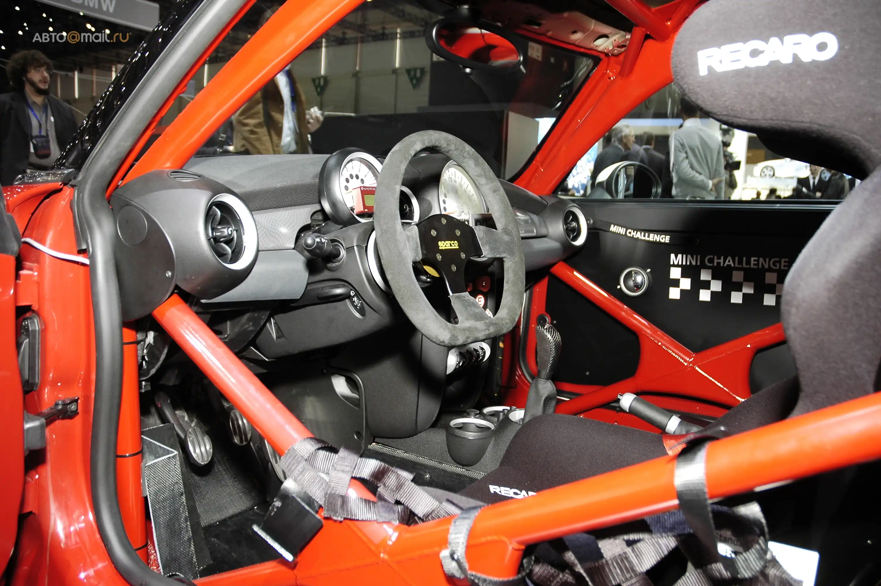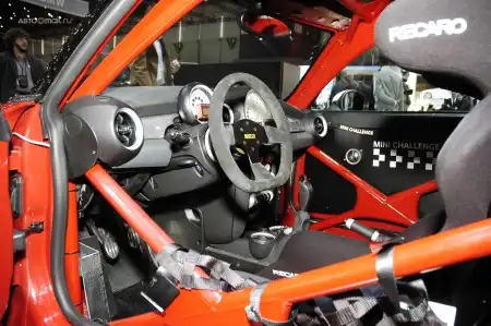 От стандартных Mini здесь вообще мало чего осталось. «Боевой» автомобиль получит другую подвеску, усиленные тормоза, доработанную коробку передач и, разумеется, более мощный мотор. Он имеет объем 1,6 л, но благодаря турбонаддуву выдает аж 220 л.с.