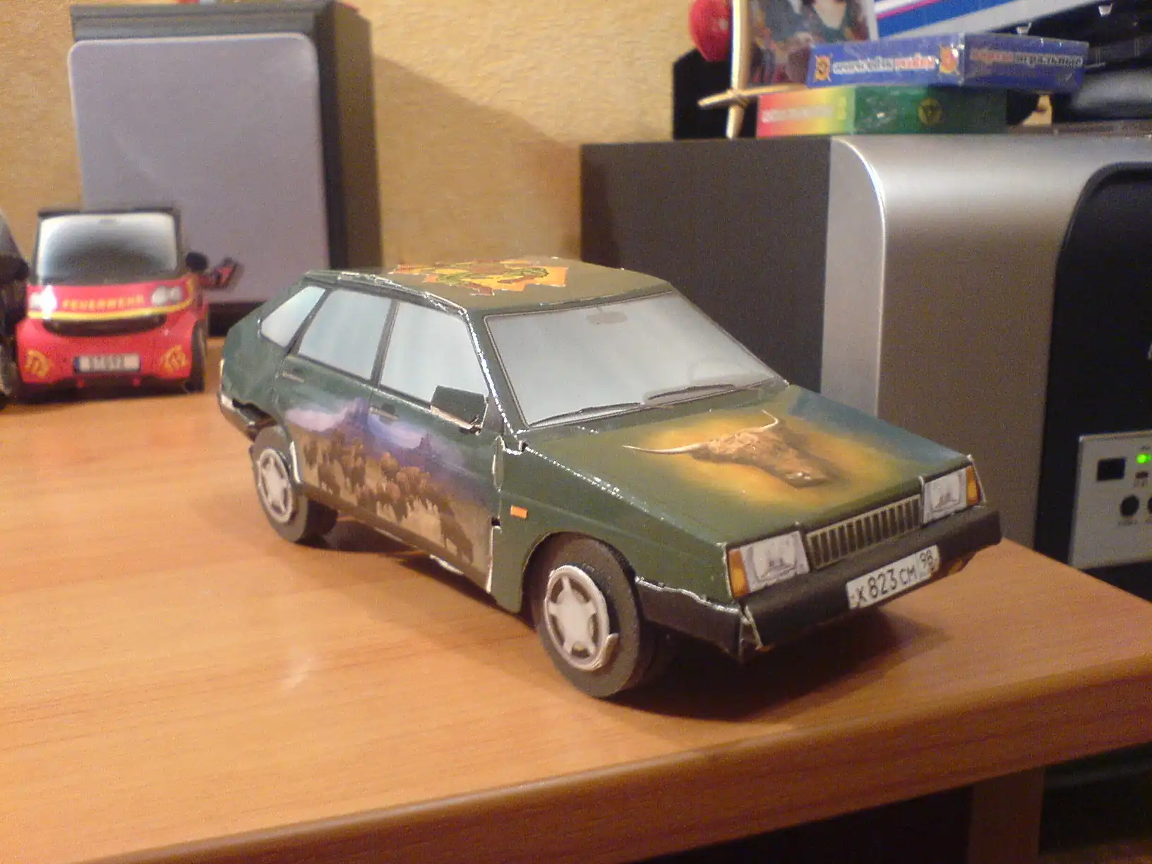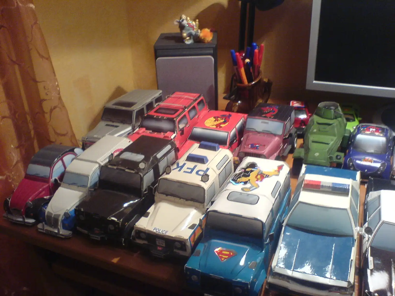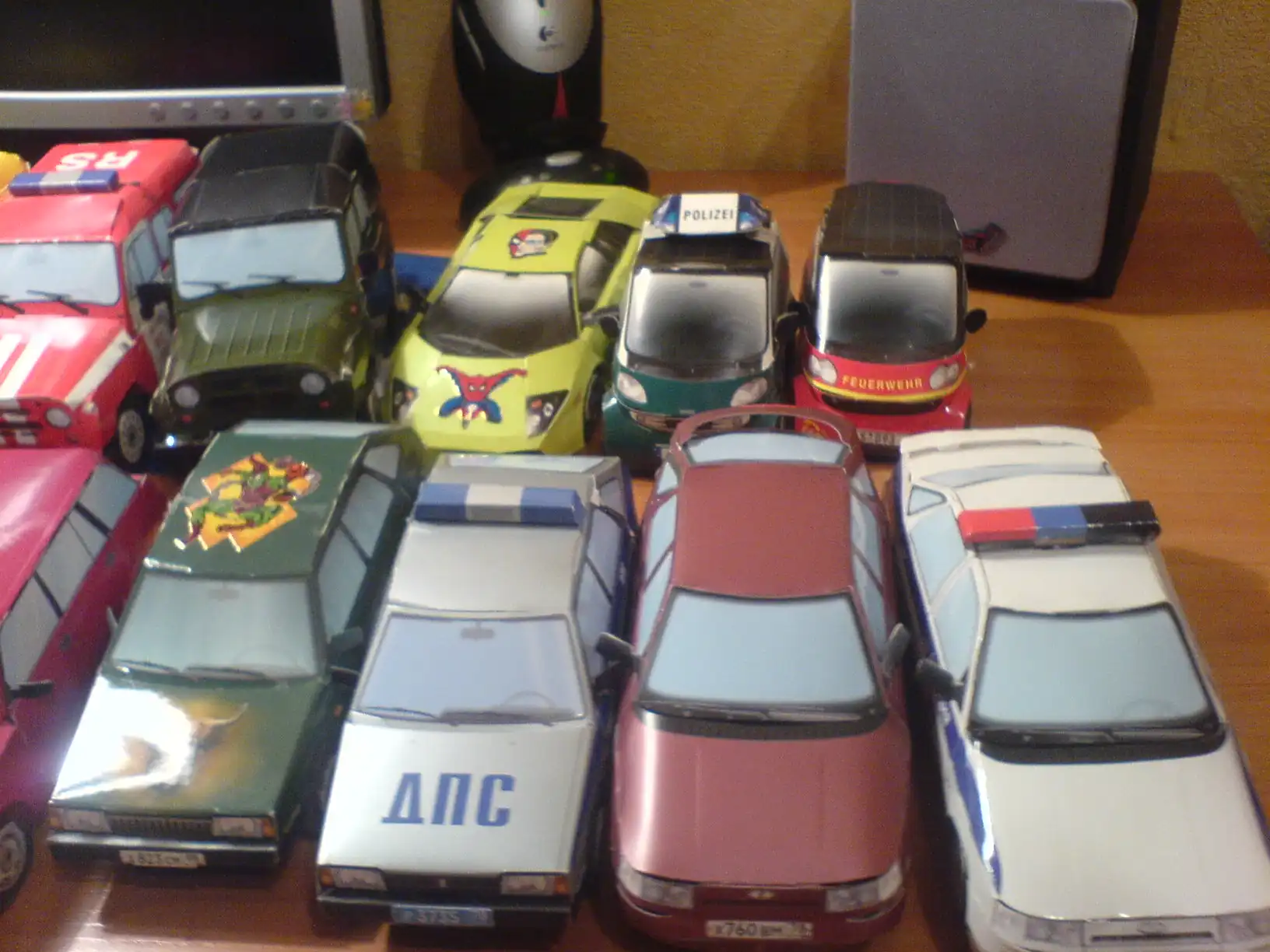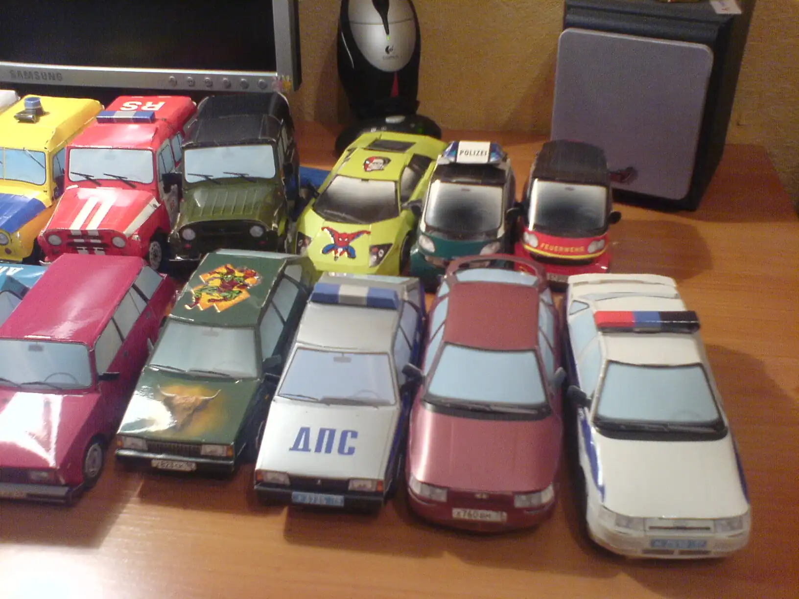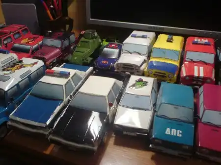 Эту коллексию я собирал сам, они все зделаны из бумаги, без ножниц и клея. Их у меня в коллекции около 30 и это ещё не все, всего машинок насчитывается более 100 видов и подвидов т.е. ВАЗ 2109 к примеру 3 вида это ДПС, гражданская и спортивная.