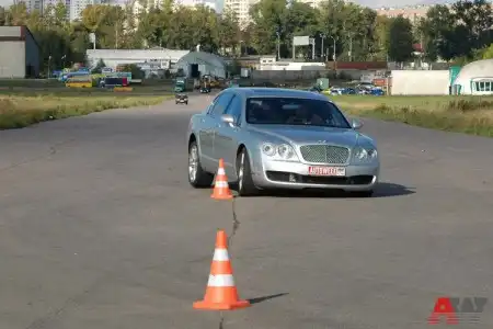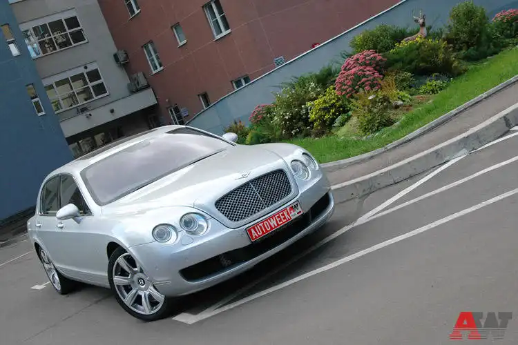 А может место хозяина, все же, за рулём? Николай, отднохни-ка, пока, сзади. На водительском месте оказалось не только комфортно сидеть, но и приятно ехать - в управлении Flying Spur послушен и точен. Тяги хватает всегда и везде, а тормоза имеют впечатляющие исполнительные механизмы в виде передних вентилируемых дисков диаметром 405 миллиметров - у некоторых автомобилей и колёса-то поменьше будут... Однако при динамичном маневрировании две с половиной тонны массы не могут остаться незамеченными. Даже заправляя автомобиль в поворот на пару с электронным помощником, который будучи в отключённом состоянии придёт на помощь при первой опасной ситуации, Bentley будет упрямиться и настойчиво упираться передними колёсами. Но зачем так ездить на роскошном седане? Вот на прямой Flying Spur легко и невозмутимо «полетит» хоть триста километров в час - не хуже скоростного экспресса. Но и место за рулём тогда я лучше уступлю Николаю.