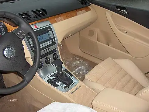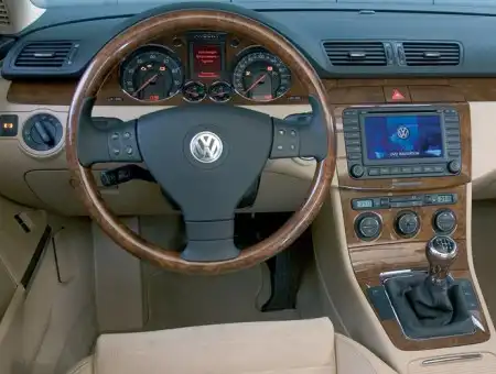 Что касается интерьера автомобиля, то и здесь всё было продумано по максимуму: кожаные кресла с плотными, поперечно прошитыми велюровыми вставками, двери и торпедо, отделанные качественным светлым пластиком, натуральное дерево, использованное для оформления центральной панели – дизайн салона просто идеален. К тому же у Passat`a есть круиз-контроль и полноценный бортовой компьютер, для изучения всех функций которого счастливому владельцу нужно провести не один час за руководством по эксплуатации. Для автомобиля в максимальной комплектации вполне естественно наличие полного электропакета с четырьмя стеклоподъемниками, регулировкой боковых зеркал и положения кресел. Причем водительское кресло имеет память на три регистра: если автомобилем управляет несколько людей, им нужно просто договорится, кто какую кнопку резервирует для себя - и при посадке в машину сидение автоматически примет индивидуально удобное положение.