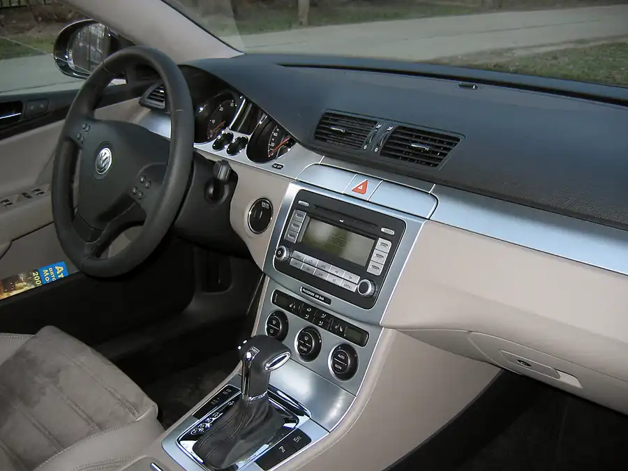 В интерьере и эргономике салона все продумано до мелочей - нет лишних, неудобных функций и предметов, а о каком-либо минимализме и речи быть не может. «Голая» машина в комплектации «Trendline» впечатляет: светодиодные стоп-сигналы, задние габариты, боковые и задние указатели, кондиционер «Climatic», а также ESP (включая экстренный двухстадийный усилитель торможения (EBA), ABS, EBD, электронную блокировку дифференциала (EDL) и антипробуксовочную систему (ASR/MSR)). Еще одна немаловажная деталь – теперь все Passat`ы запускаются без ключа зажигания. Передатчик, используемый для отпирания и запирания центрального замка, почти до конца вставляется в держатель, расположенный справа от рулевого колеса – электронный замок зажигания (EZS). После этого одним нажатием можно запустить двигатель при помощи простой кнопки Kessy (Keyless-Entry-Start-and-Exit-System).