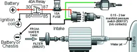 В атмосферных двигателях форсунка устанавливается во впускном коллекторе, рядом с дроссельной заслонкой. Владельцам турбовых моторов повезло еще раз – здесь целых три варианта установки: перед компрессом, между компрессором и интеркулером, после интеркулера. В первом случае вместо насоса используется давление наддува, но требования к форсунке очень высоки и компрессор живет достаточно недолго – на крыльчатке появляются отложения солей. Второй случай – из опыта применения в авиации, где форсунки (порой их было больше десятка) устанавливались непосредственно у выхода из турбины. И наконец, третий вариант хорош тем, что вода играет роль дополнительного интеркулера, снижая температуру воздуха в цилиндре примерно на 500 градусов.