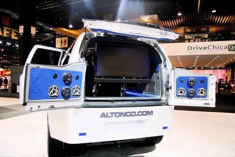 На выставке также можно увидеть очень интересный автомобиль, выполненный в американском стиле: Alton F-650 XUV, в качестве базы для которого был взят пикап Ford F-650. В этом автомобиле с 7,2-литровым двигателем пол покрыт паркетом, аудиосистема состоит из 42 колонок, в салоне находится два 16-дюймовых дисплея, а в багажном отделении расположен 42-дюймовый плазменный экран. Также в этом авто можно обнаружить 4 компьютера и очень мощный гудок. Покупателю это 11,8-тонный автомобиль обойдется примерно в $200 000.