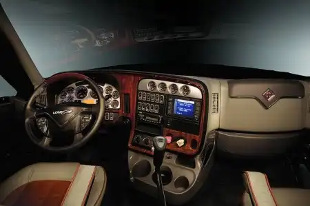 В новом International LoneStar объединены отличные аэродинамические показатели с уникальным внешним видом, который может быть дополнен широким выбором аксессуаров. Создатели этого грузовика проводили опрос среди американских дальнобойщиков, чтобы узнать, что они хотят видеть на своем тягаче, и ответы большинства из них совпадали: больше хрома и фонарей. Не обошли стороной и внутреннее оснащение кабины, где пол выполнен из твердых пород древесины, который совместно с множеством ящиков, полок и ниш создаст практически домашний уют для дальнобойщиков.