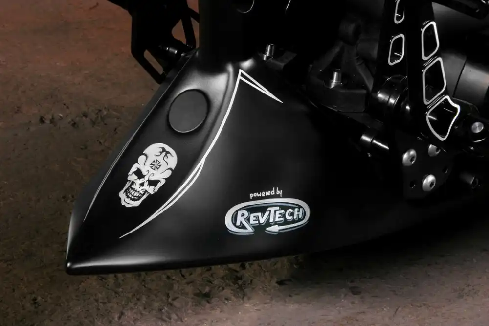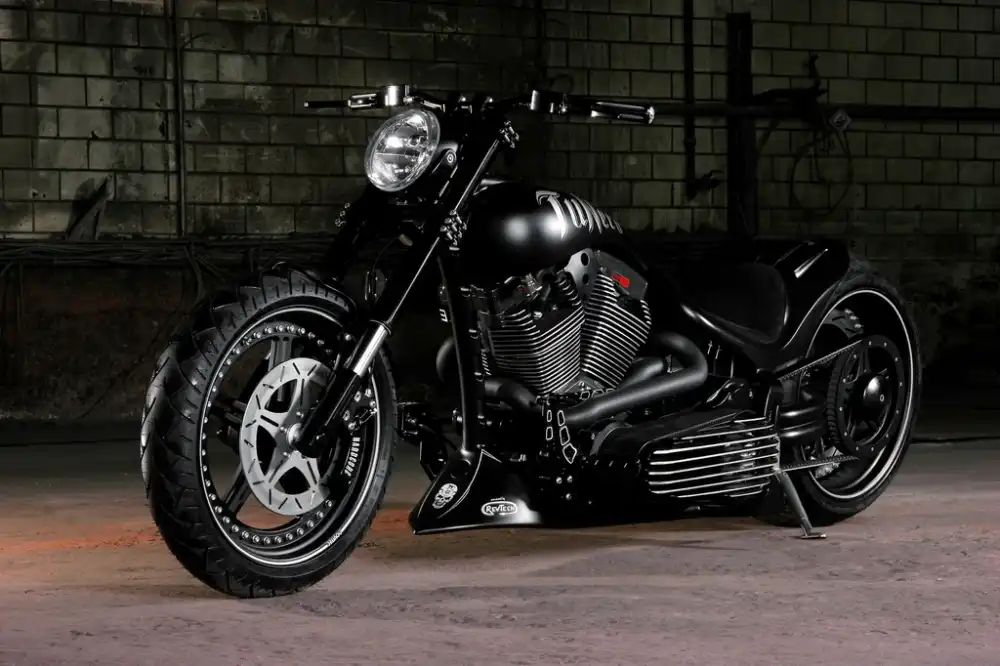 Далека от ординарности и техническая начинка. Начнем с двухколесной машины. Рама мотоцикла – собственной конструкции Walz Hardcore Cycles. На байк установлен 1800 кубовый двигатель с карбюратором Mikuni, керамическим выпуском и "головками", развивающий 110 л.с. Над ним трудились специалисты из RevTech. Привод – ременной, КПП – 5 ступенчатая, сцепление – гидравлическое. 18 дюймовые диски такого же дизайна, что и на Ferrari, обуты в резину Metzeler. Если подкатить на таком байке к фешенебельному ночному клубу, то вам наверняка разрешат прямо на нем туда и заехать!