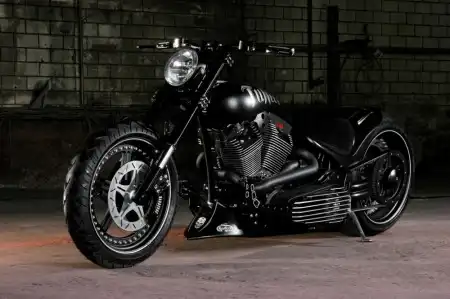 Как гласит корпоративная легенда, встретились как-то в баре Маркус Валц (глава Walz Hardcore Cycles) и Вольфганг Хагедорн (Novitec Rosso) и в ходе приватной беседы решили затеять совместный проект – мотоцикл от Walz и Ferrari от Novitec Rosso "в одном флаконе". Плод их работы – перед вашими глазами. Это невероятной красоты и экспрессии парочка – блистательный "кастом" и восхитительная Ferrari F430. Оба – абсолютно черные. Оба – единственные в своем роде. И клиенты тоже эксклюзивные и не нуждающиеся в представлении – Брэд Питт и Кими Райконен.
