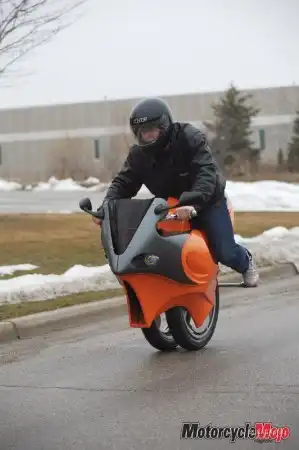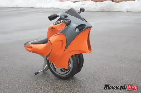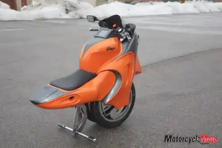 Придумал это чудо 18–летний парень из Канады.Это чудо Унобайк без тормоза и без газа , все управление происходит при изменении наклона тела (гироскоп стоит).А чтобы затормозить, надо сильно отклониться назад.