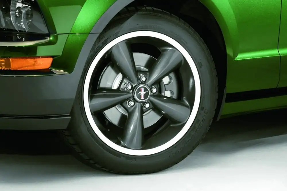 Внешне Bullitt привлекает внимание 18-дюймовыми колесами темно-серого цвета, стилизованными под те, что стояли на Mustang GT390. Они обуты в резину BF Goodrich g-Force T/A KDWS размерностью 235/50, которая используется компанией Ford в гоночных соревнованиях на кубок Миллера на трассе Miller Motorsports Park. Салон щедро одарен алюминиевыми вставками на приборной панели, которые до этого не использовались компанией ни в одной модификации Mustang. Также легкий металл присутствует в отделке дверных панелей и из него же сделан «набалдашник» КПП. Кресла, изготовленные, кстати, из соевого сырья, и трехспицевое рулевое колесо повторяют кресла и руль Shelby GT500.