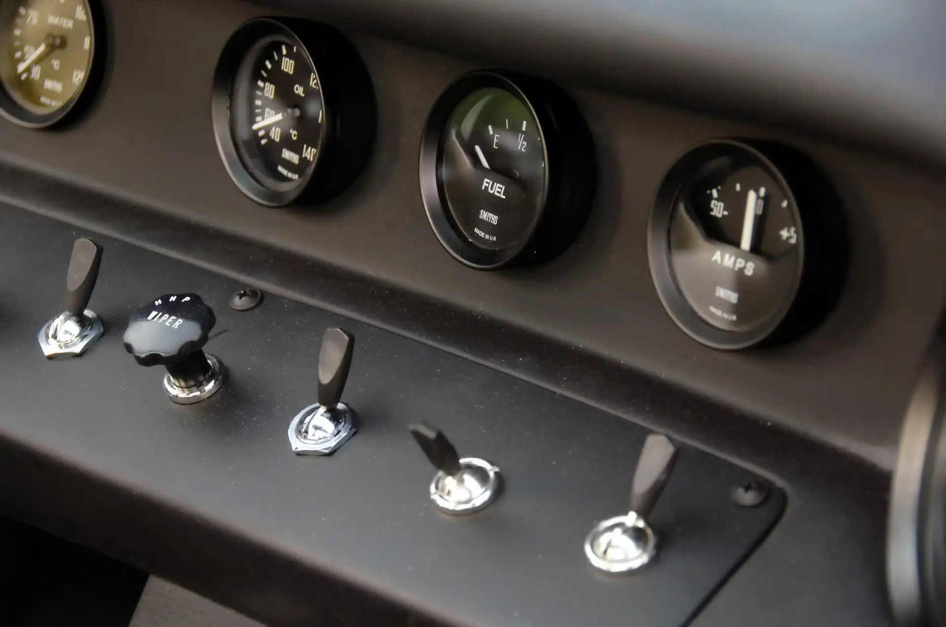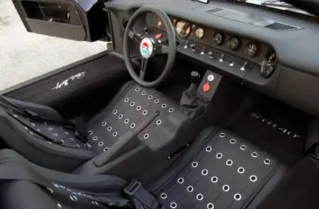 Невероятная тормозная динамика достигается с помощью легких вентилируемых тормозов Wilwood. И передние и задние тормоза имеют диски диаметром 12.75” и 4-х поршневые суппорты. Оригинальные 15-дюймовые диски Halibrand одеты в шины BFGoodrich g-Force Drag Radial (передние - 225/50/15", задние - 275/60/15")
