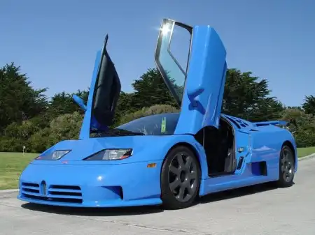 Окончательный вариант Bugatti EB110, заявленной в конце 1989 года, был готов к 1990-му — его создатели подгадали точно к 110-летию со дня рождения Этторе Бугатти, хотя линии нового автомобиля представляли собой полную противоположность классическому Bugatti. EB110 заявил свои претензии на звание самого быстрого автомобиля в мире — его мощность составляла 553 л.с. Дикий, необузданный — такими эпитетами награждали его специалисты, руководствуясь не только мощностью двигателя, но и внешностью этого пугающего зверя, вес которого достигал 1550 кг. Внутри — соблазнительное сочетание серой кожи и грецкого ореха| внушительная приборная панель содержит часы, кондиционер, электрическое программирование опорной поверхности и стерео/CD магнитофон высокого качества звучания. В салон вы попадаете через высокие арочные двери, интерьер совращает своими кожаными местами, рулем, больше похожим на штурвал авиалайнера. Для того чтобы быть элегантным, автомобилю мешает такое обилие вычурных деталей, сделанных явно напоказ.