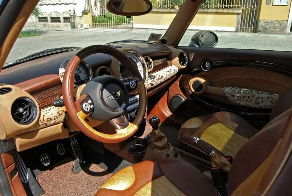 MINI Chateau – настоящий интернациональный проект. Фирма – британская. Владеют ей немцы. Создан автомобиль итальянской компанией Aznom. А повествует он о марке французских вин. В его силовом агрегате и подвеске не стоит искать изменений – их нет. Все внимание итальянцы сосредоточили на экстерьере и интерьере машины. Кузов автомобиля исполнен в два цвета – коричневый и золотой. Органично вписались в эту цветовую схему псевдодеревянные элементы. Салон автомобиля выполнен в теплых тонах. Алькантара, дерево и кожа различных сортов создают ощущение утонченности и изысканности, намекая лишний раз на вкус французского вина. Если французский колорит салона показался неубедительным, то все сомнения снимает содержимое багажного отсека – специальное хранилище для 6 бутылок вина и бокалов.