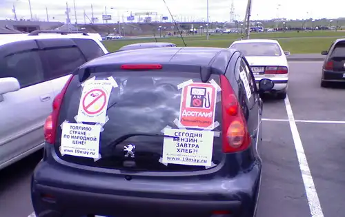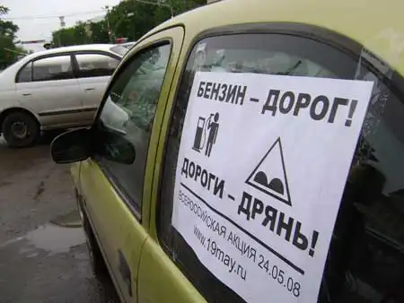 В субботу, 24 мая 2008 года, примерно в 50 городах России прошла акция протеста автомобилистов против роста цен на топливо под названием «Марш пустых канистр по убитым дорогам».