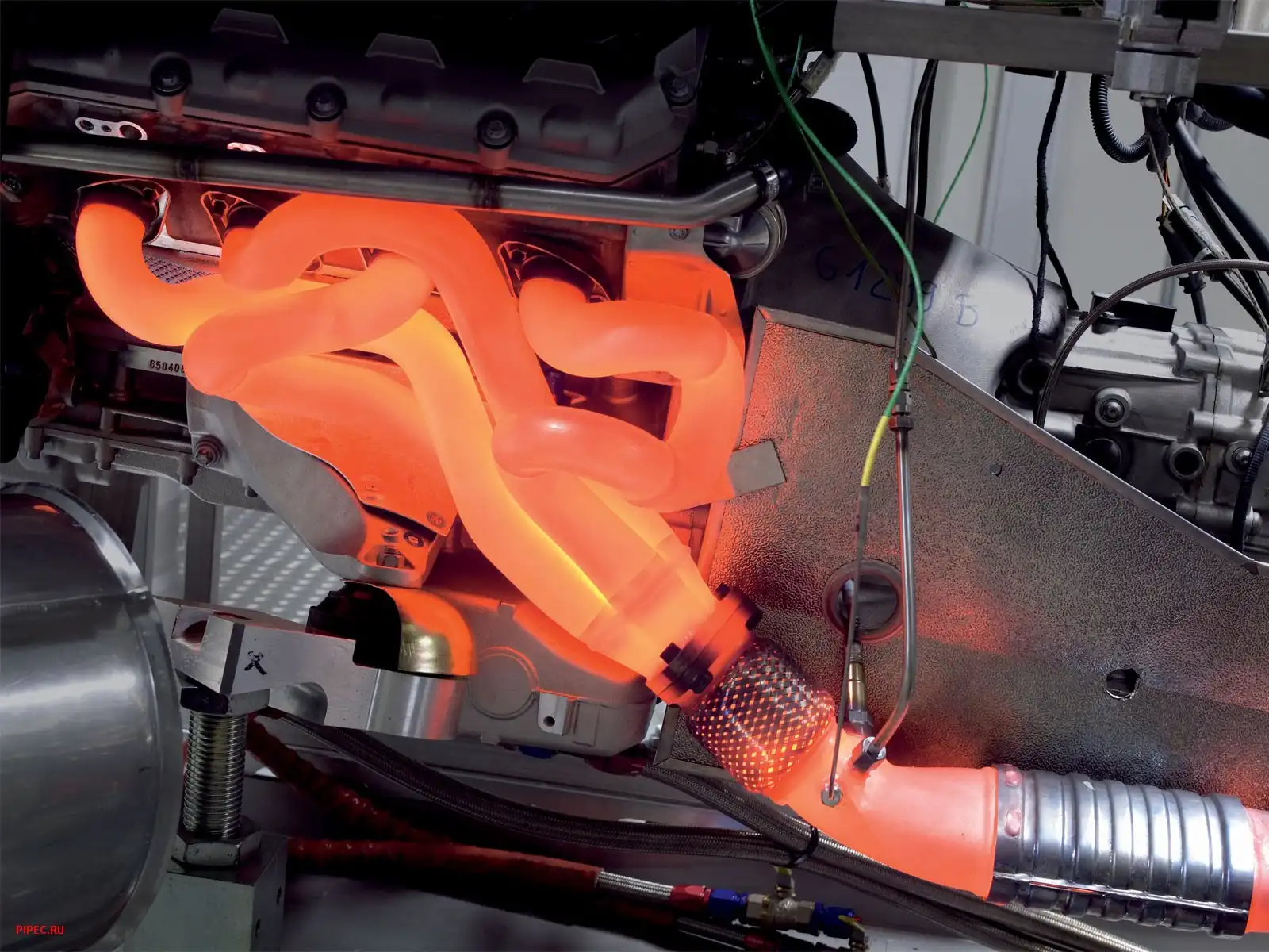 В собременных автомобилях (я имею спорт) уже давно выпускные коллектора не отливают из чугуна! Коллектора вытягивают из обычной, стальной трубы (со спецовым сплавом, канеш). Гнут их (как видно на первом фото), чтобы получить равнодлинный тракт! Почему делают из трубы, а не отливают? Да наверно так дешевле и в материалах и в технологическом процессе. Да и в гонках, чтобы под капотом уменьшить температуру можно обтянуть жаропонижающим материалом!