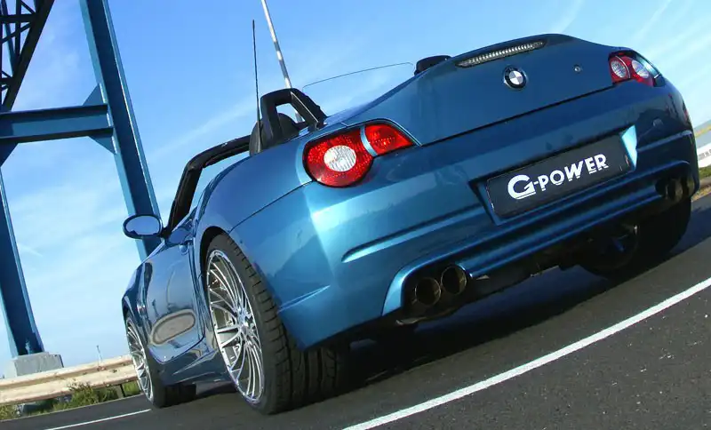 Автомобили серии M – осознанный выбор любителей и почитателей марки BMW, которым нужен быстрый автомобиль. BMW серии M – быстрый автомобиль по определению. Однако это не помешало компании G-Power предложить опциональный комплект запасных частей для улучшения технических характеристик машин этой серии. Последний пакет, увидевший свет, называется EVO III – турбо-кит для модели Z4 3,0i с помощью которого можно увеличить «стадо лошадей под капотом» со стандартных 231 до 375 «голов». Подобный «апгрейд» позволяет автомобилю разогнаться от ноля до сотни меньше чем за 5 секунд, максимальная скорость составляет 300 км/ч. В комплект так же входят аэродинамические элементы кузова, 20-дюймовые колеса, регулируемые койловеры, тормозные диски диаметром 15 дюймов и выхлопная система с четырьмя трубами.