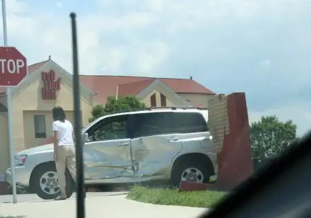 Была новая тачка, пробег всего 3500 км, но он убил ее.Причина: не справился с коробкой "автомат".Смотрите куда и как он влетел :)