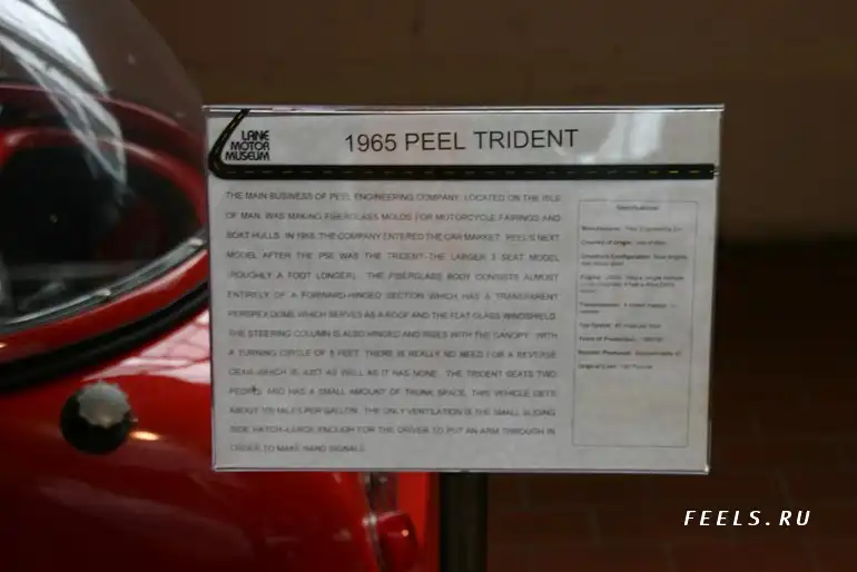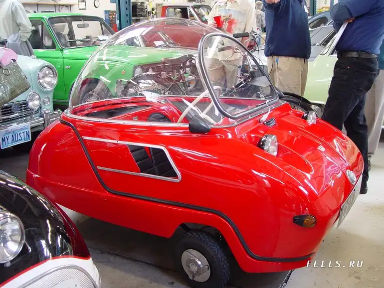 Эта компактная машинка (Peel Trident) весила чуть больше 60 кг., разгонялась до 75 км/ч.Имела впоследствии даже автоматическую коробку передач.Всего было произведено около 45 машин.